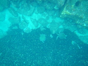 入ってすぐに、マダラトビエイがフワフワ泳いでいたり