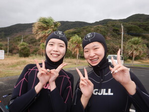 ウェットスーツだけでは寒いので、フードも装着!