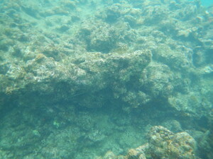 北西の風が10mを超えると、このシュノーケルポイントにも風がまわりこんでくるためか、沖の方ではクラゲたちがワラワラと・・・・