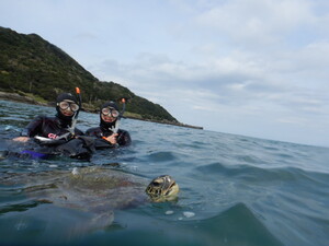 透明度がないから、浅いところで見せてあげようというウミガメのやさしさかな?^^