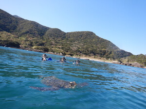 少しずつウネリも取れてきていますが、まだいつもの屋久島の海には程遠い透明度